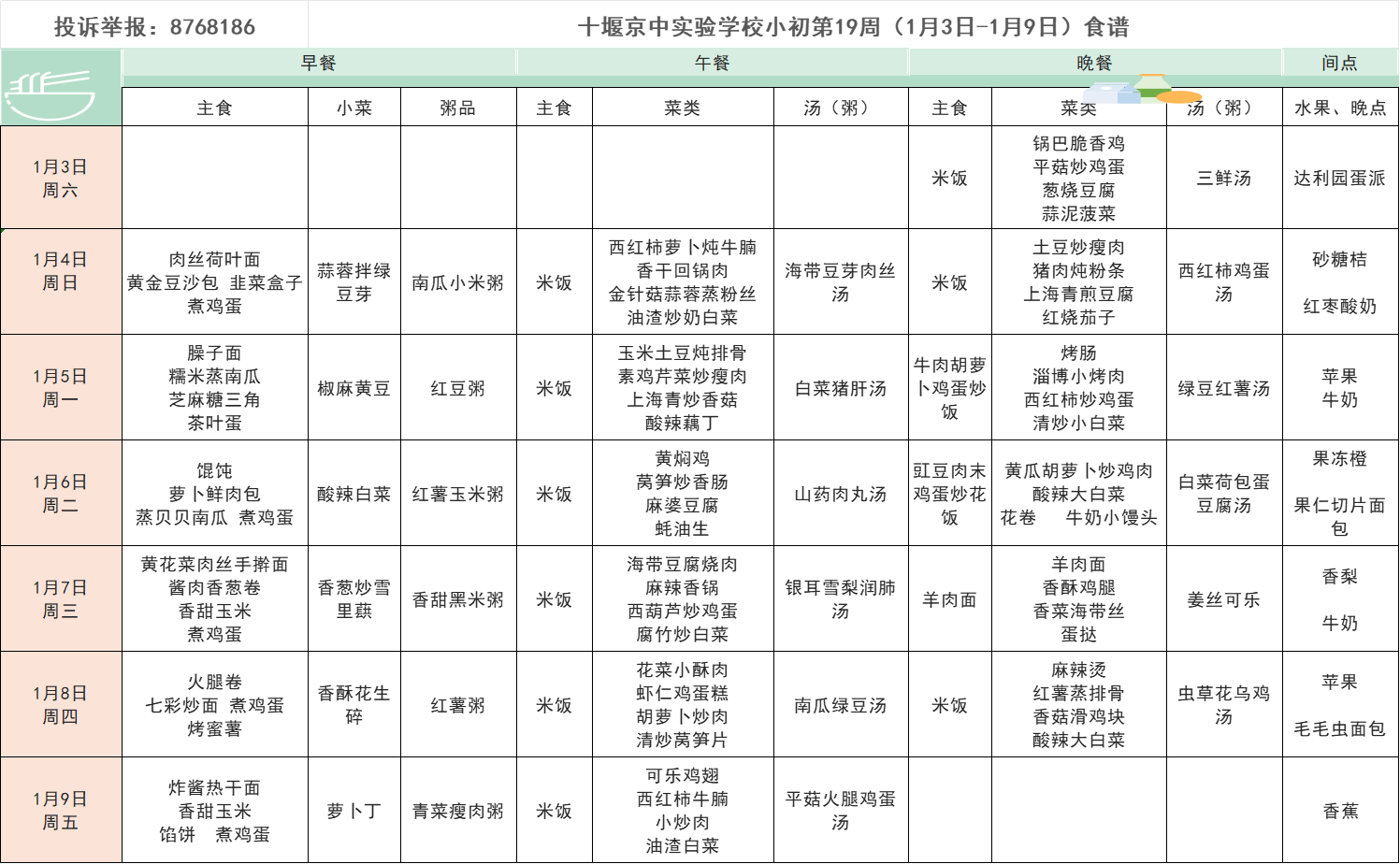每周食谱(1.03-1.10)第十九周