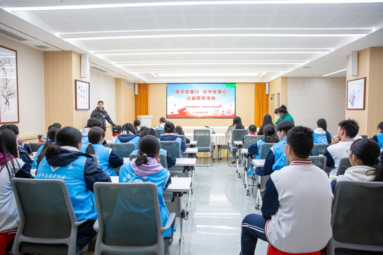 随后,师生们前往市慈善公益中心,在参观过程中,学生们了解了慈善事业的发展历程与社会意义,他们参与了互动交流,观看微电影,并在活动尾声捐赠了精心准备的物品,用行动诠释“京中有爱心”。