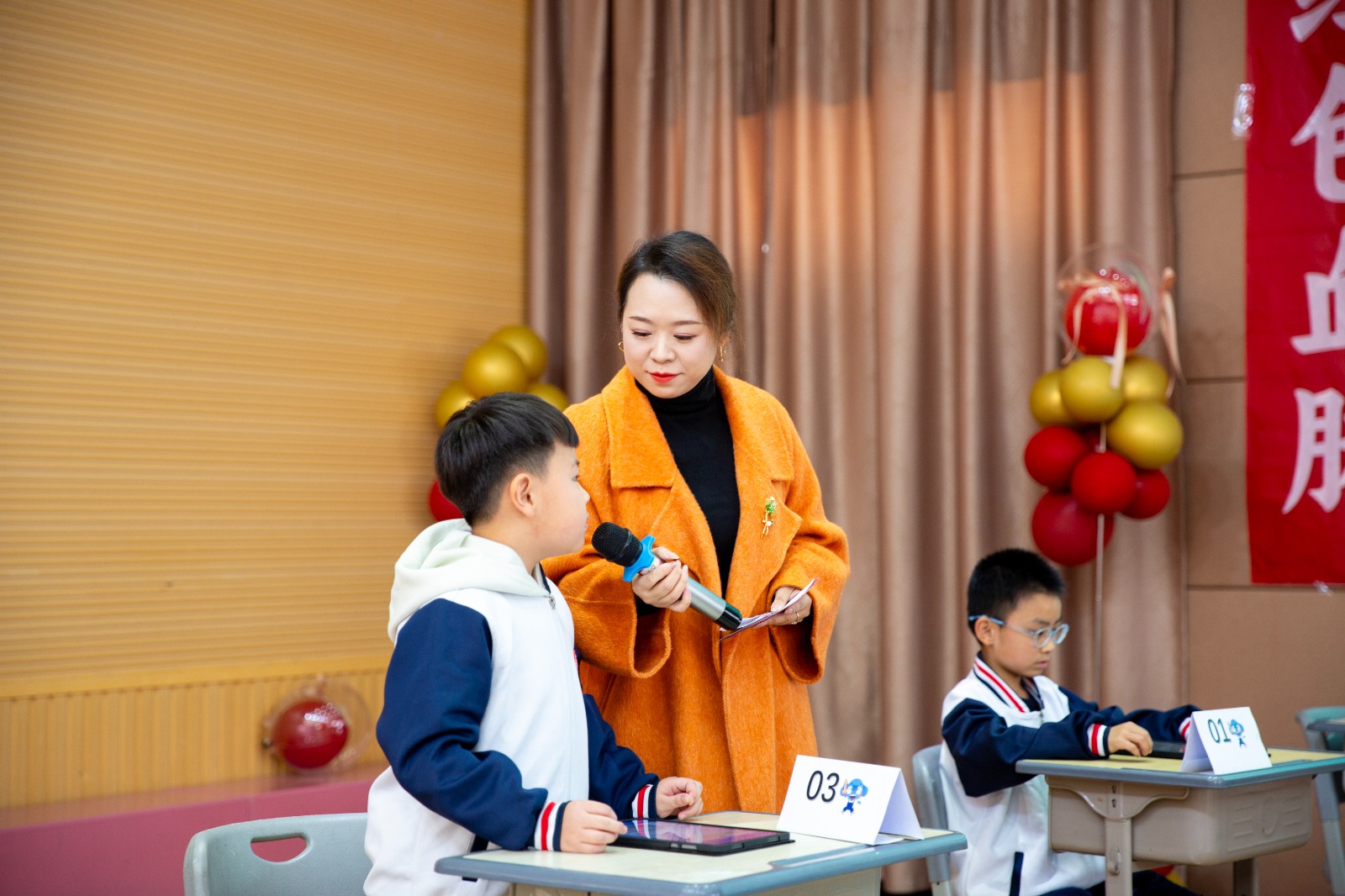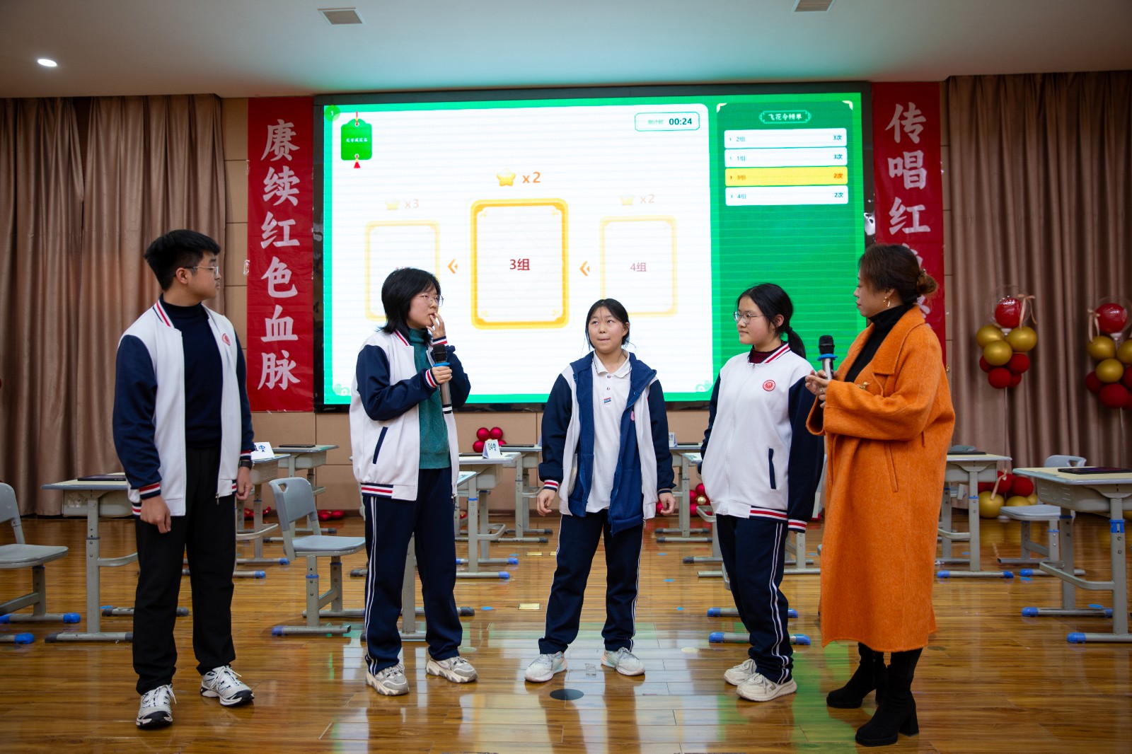 抢答对决,智勇交锋。晋级选手在本环节迎来10道抢答题,题目通过大屏幕展示,选手们手持答题器争分夺秒,抢答时间仅30秒!现场观众也为选手们的快速反应与渊博知识惊叹不已,排名前三的选手(初中组前四名),可闯入终极对决!