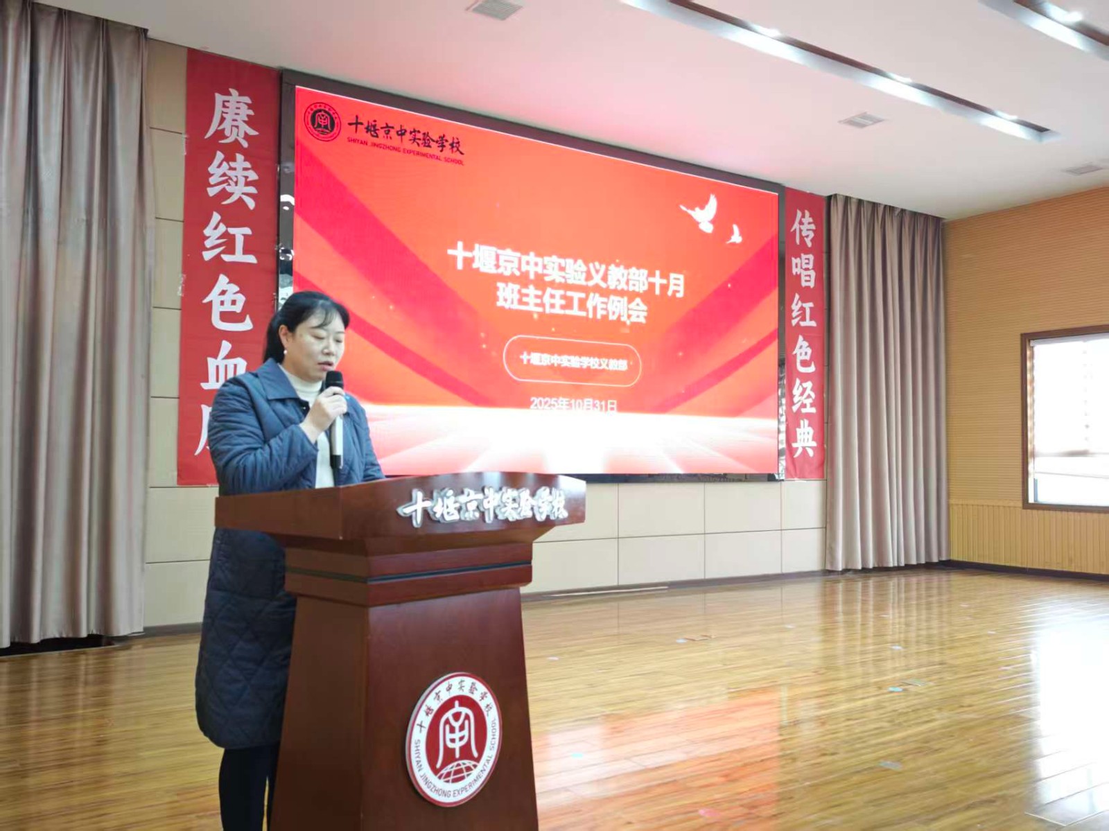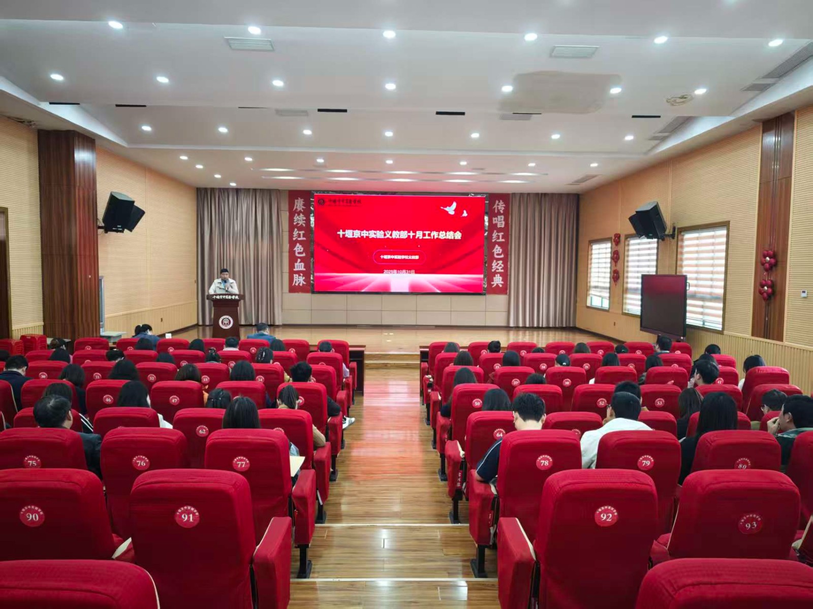 陈兆芳总结十月德育工作。国庆期间组织学生完成爱国主题实践作业。10月16日学生参演十堰市职工球类运动会开幕式获最佳贡献奖,23日举行红歌比赛,24 日下发致家长信,27日开展慈善总会参观与敬老院慰问活动,31日检查安全记载本并召开班主任例会。