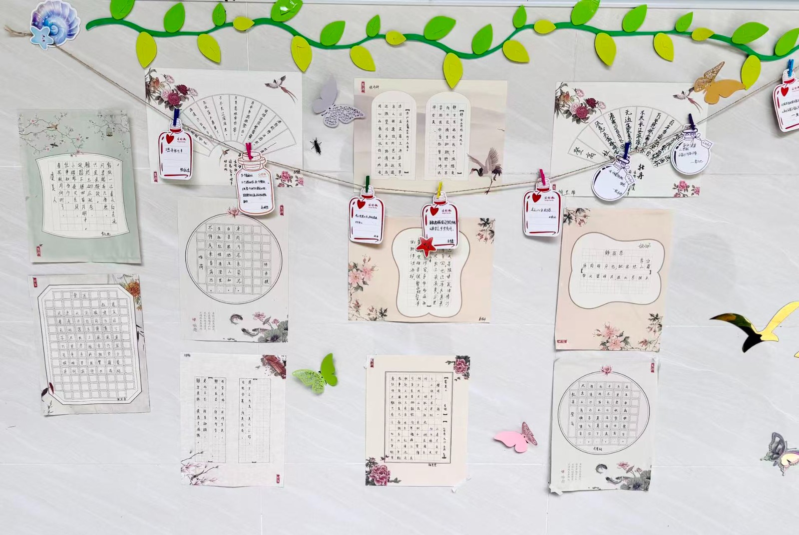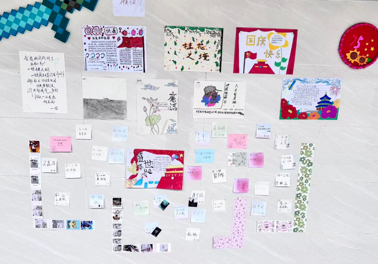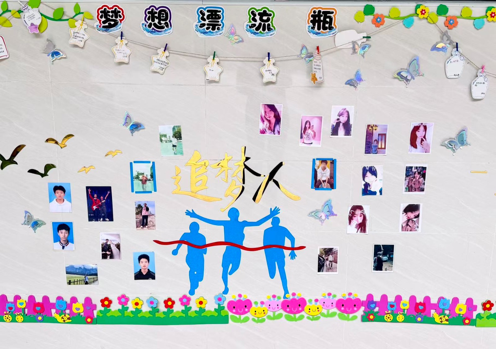 墙上贴满了同学们的照片