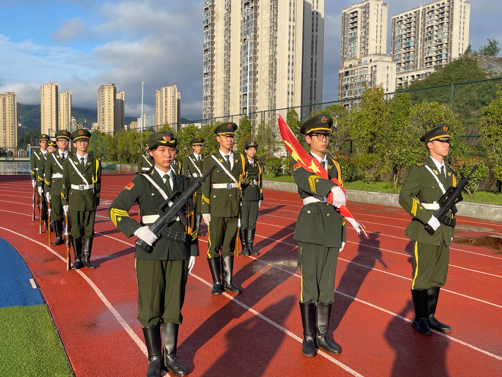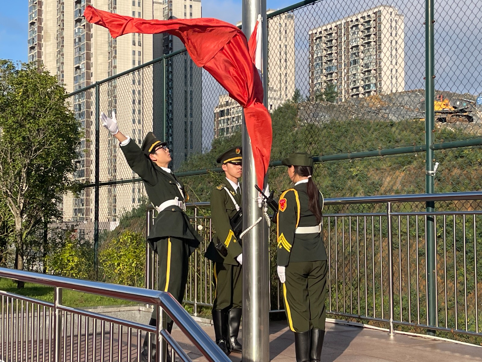 在全体师生的注目礼中冉冉升起