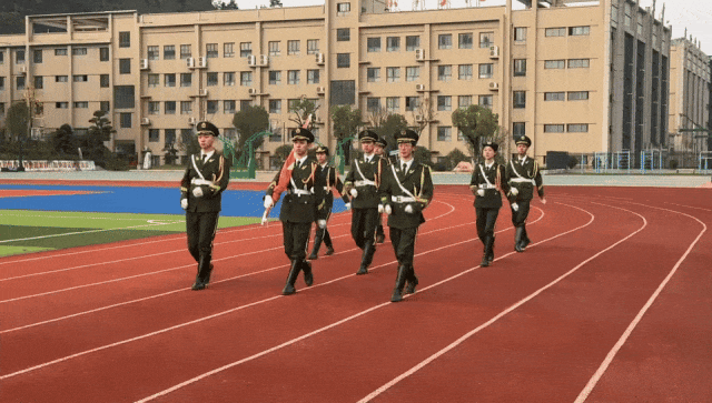 伴随着昂扬的旋律,升旗仪式正式拉开帷幕。护旗手们精神抖擞、步伐铿锵,护送着五星红旗缓缓走向升旗台。当雄壮的《中华人民共和国国歌》奏响,五星红旗冉冉升起,全体师生肃立注目,少先队员行队礼,爱国之情与奋进之志在每个人心中激荡。礼毕后,全体师生有序向后转,以整齐的姿态迎接接下来的议程。