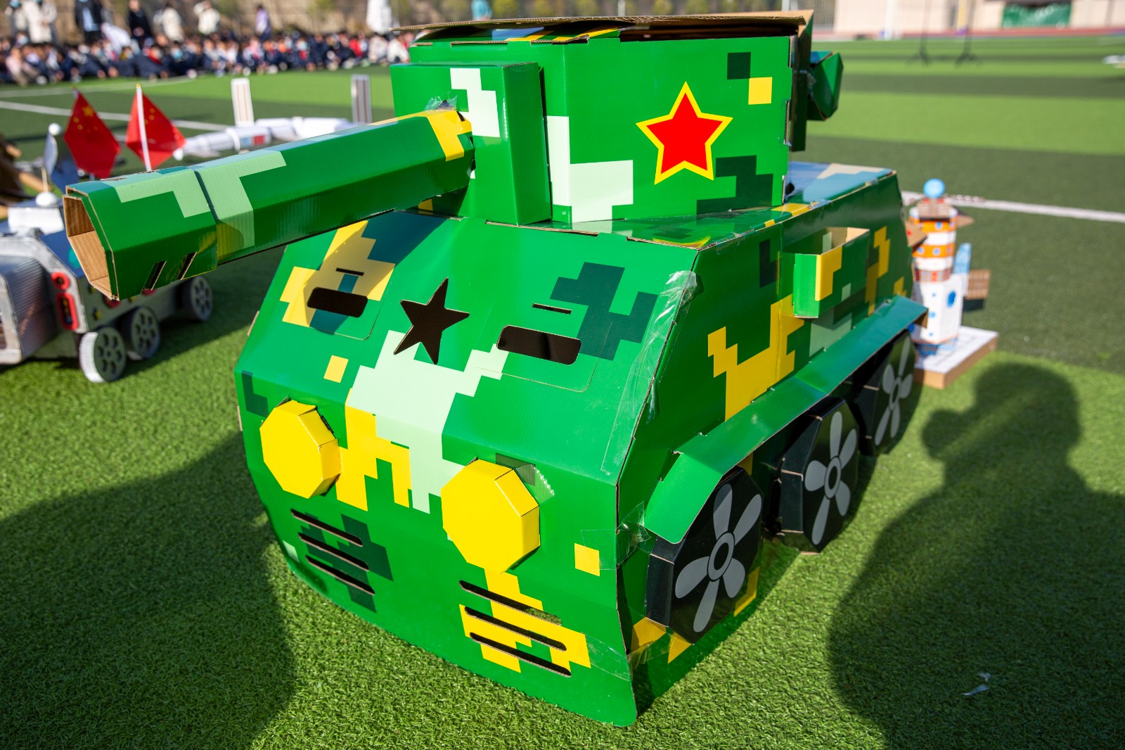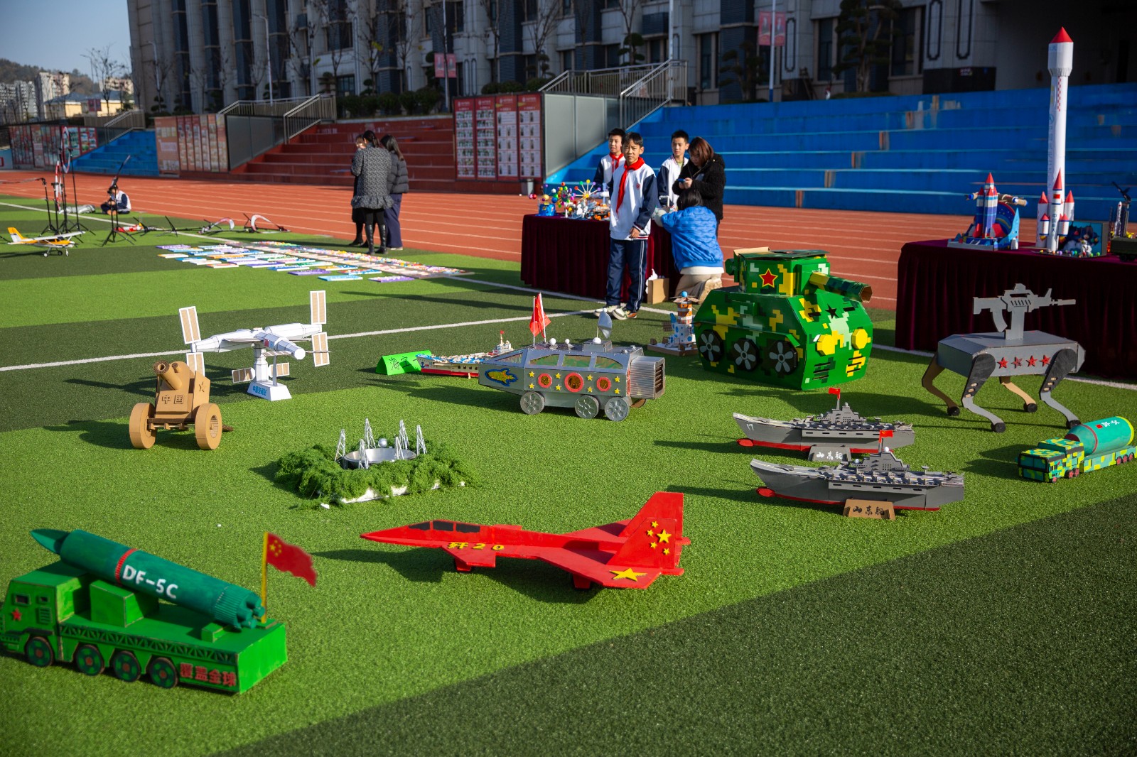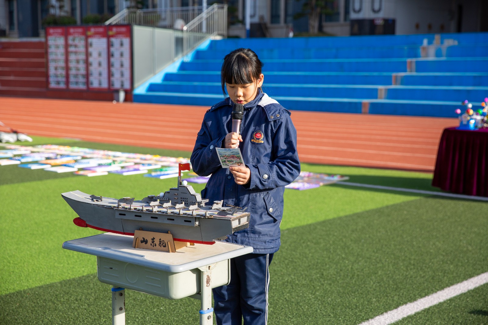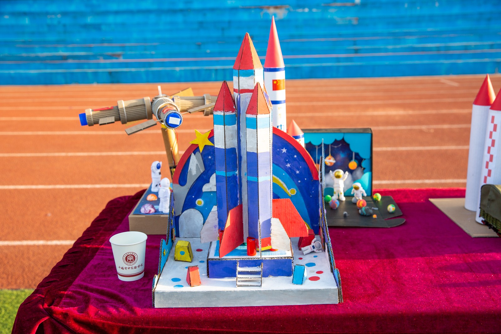“未来号”坦克、八大行星、天眼、山东舰舰母、中国空间站、长征五号火箭、驱逐舰、歼-20隐身战斗机等手工制作,每一件作品都凝聚着同学们对祖国的深厚情感与无限创意。这些亲手制作的重器模型,不仅是智慧的结晶,更是爱国情怀的生动体现。