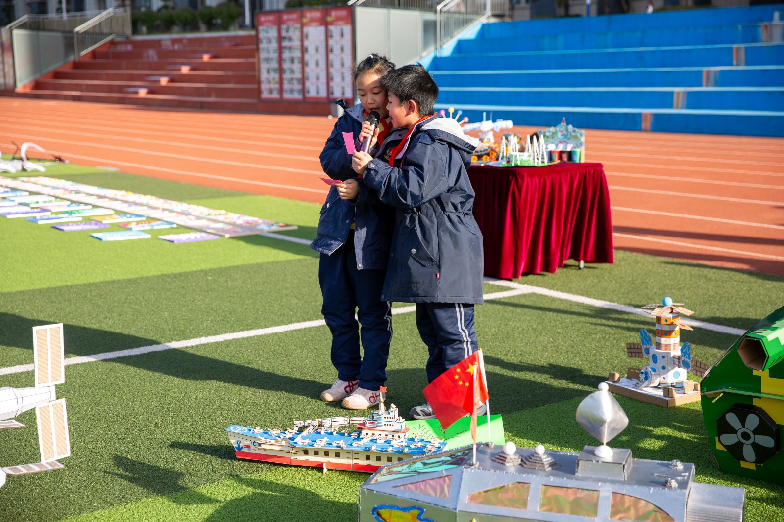 科技节在各班介绍国之重器的环节中拉开帷幕。同学们化身为小小讲解员,用稚嫩却坚定的声音,介绍着自己亲手制作的“大国重器”模型。
