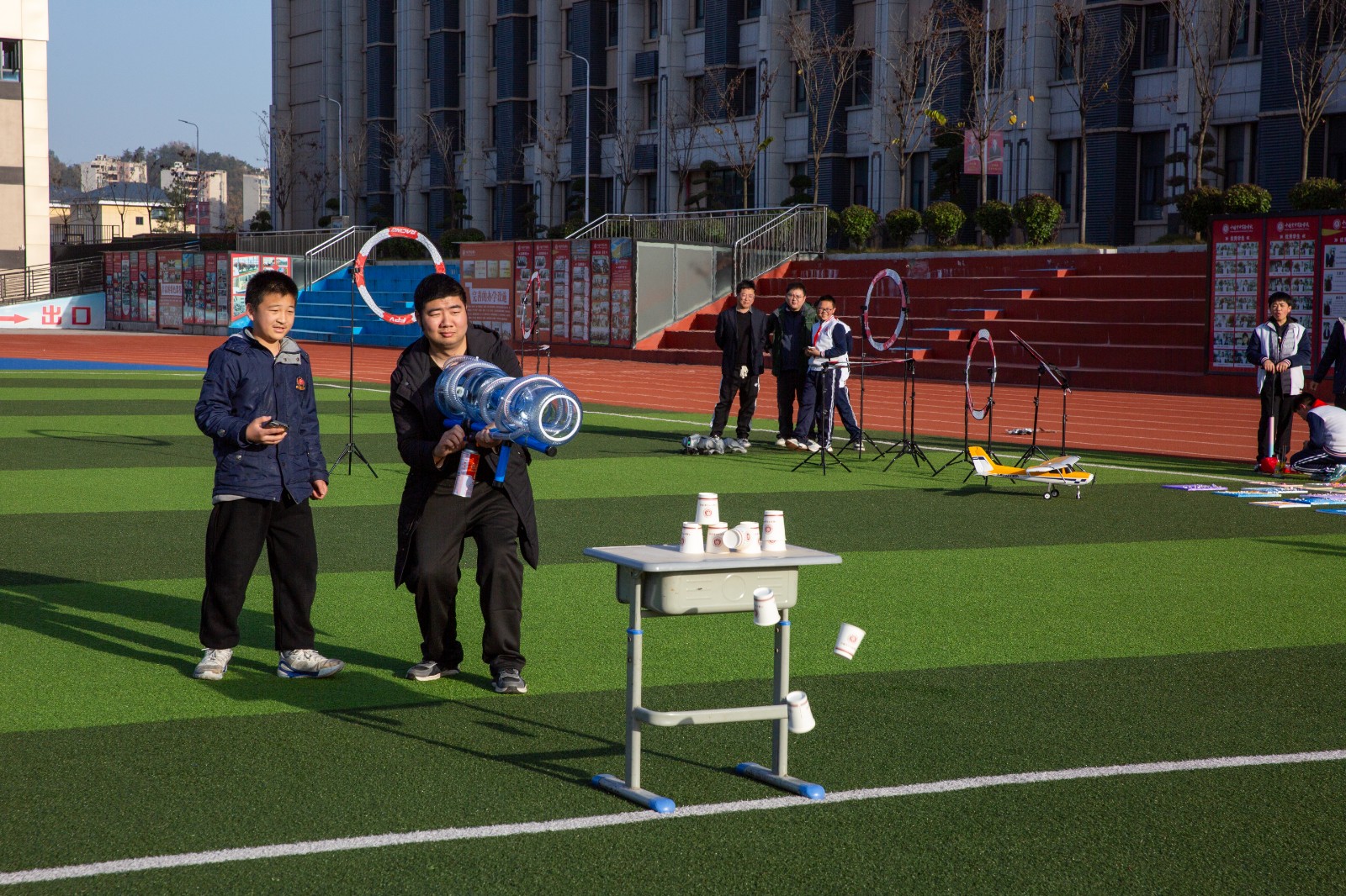 二级水火箭直冲云霄,带着同学们的梦想划破天际;等离子脉冲炮的炫酷特效,引来阵阵惊呼。