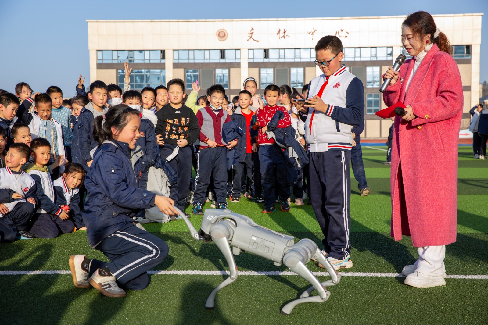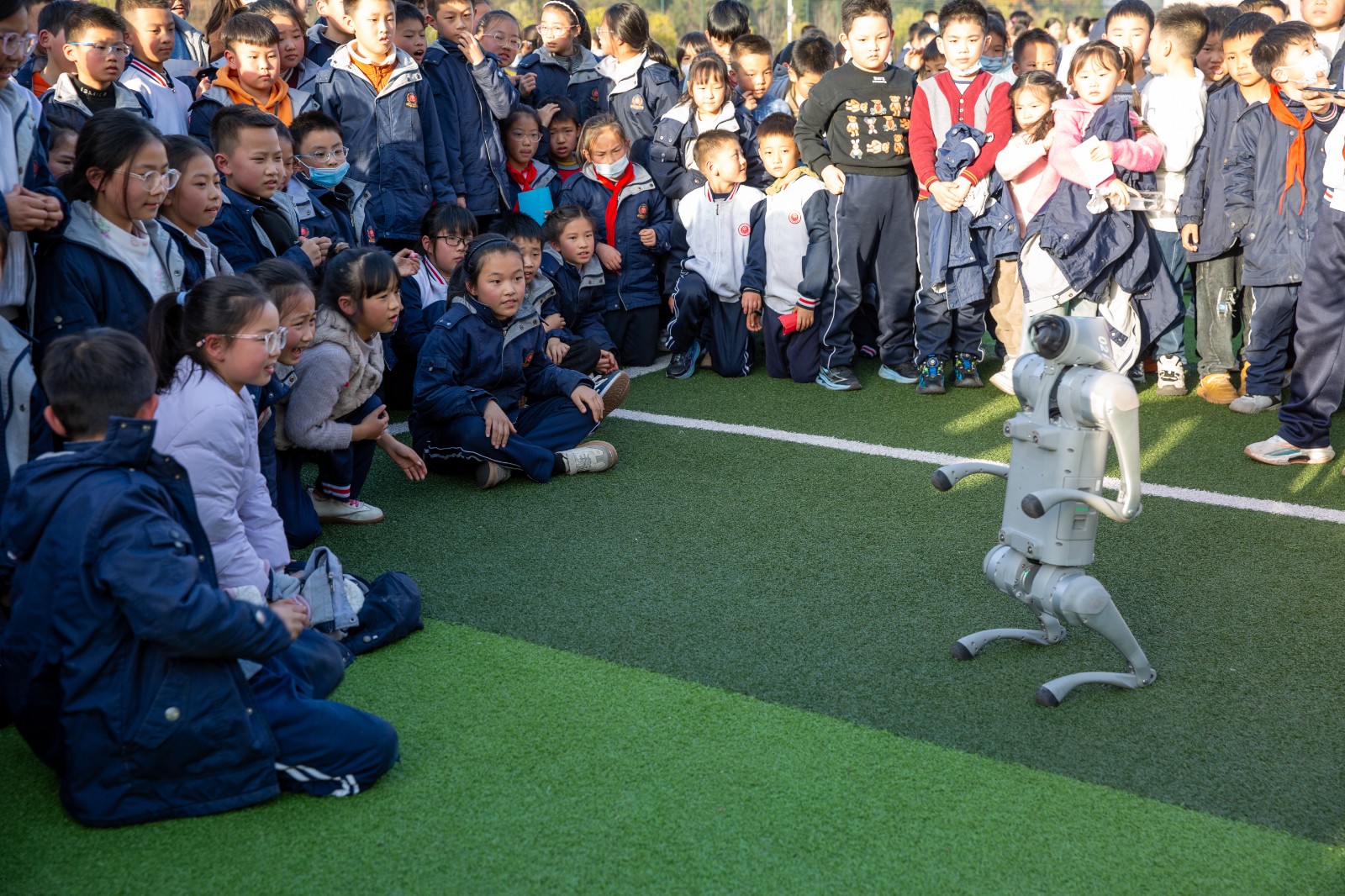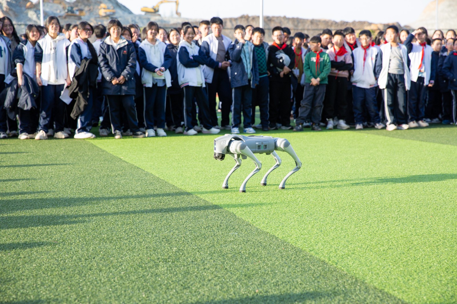 同学们热情高涨,争相与机器狗互动,现场气氛热烈非常。原本看似冰冷的科技,在亲切互动中变得温情满满,让同学们真切感受到科技的温度与魅力。