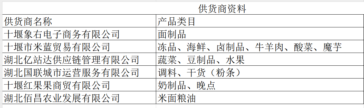 十堰京中实验学校2025-2026学年食堂供货商信息